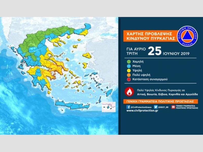 Αύριο, Τρίτη 25.06.2019, υπάρχει μεγάλος κίνδυνος για φωτιά
